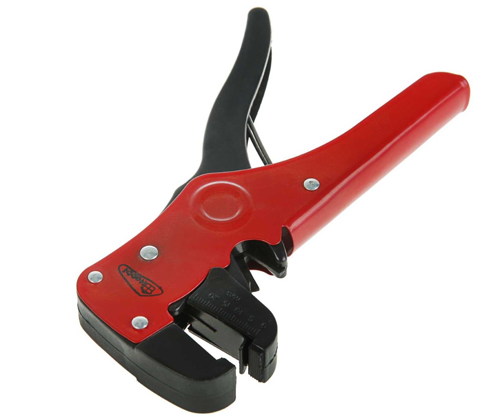 Представляет собой профессиональное приспособление, которое помогает удалять изоляционный слой. Кроме того, дополняется возможностью автоматически устанавливать габариты сечения. Подойдет для работ с проводами любых сечений в диапазоне 0,2-6 кв. мм.