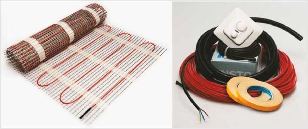 После ориентировочных расчетов мощности можно подобрать конкретную модель тёплого пола с подогревом. Сейчас есть 2 вида продукции этого назначения – готовые маты с уже укрепленными элементами нагрева и кабели, которые можно устанавливать с произвольным шагом.