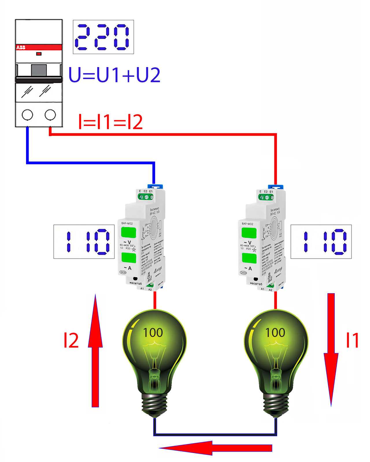 Чем меньше мощность в последовательной цепи, тем больше сюда приходится напряжения. Более мощные потребители получают меньший перекос, менее мощным — достается самое высокое напряжение.