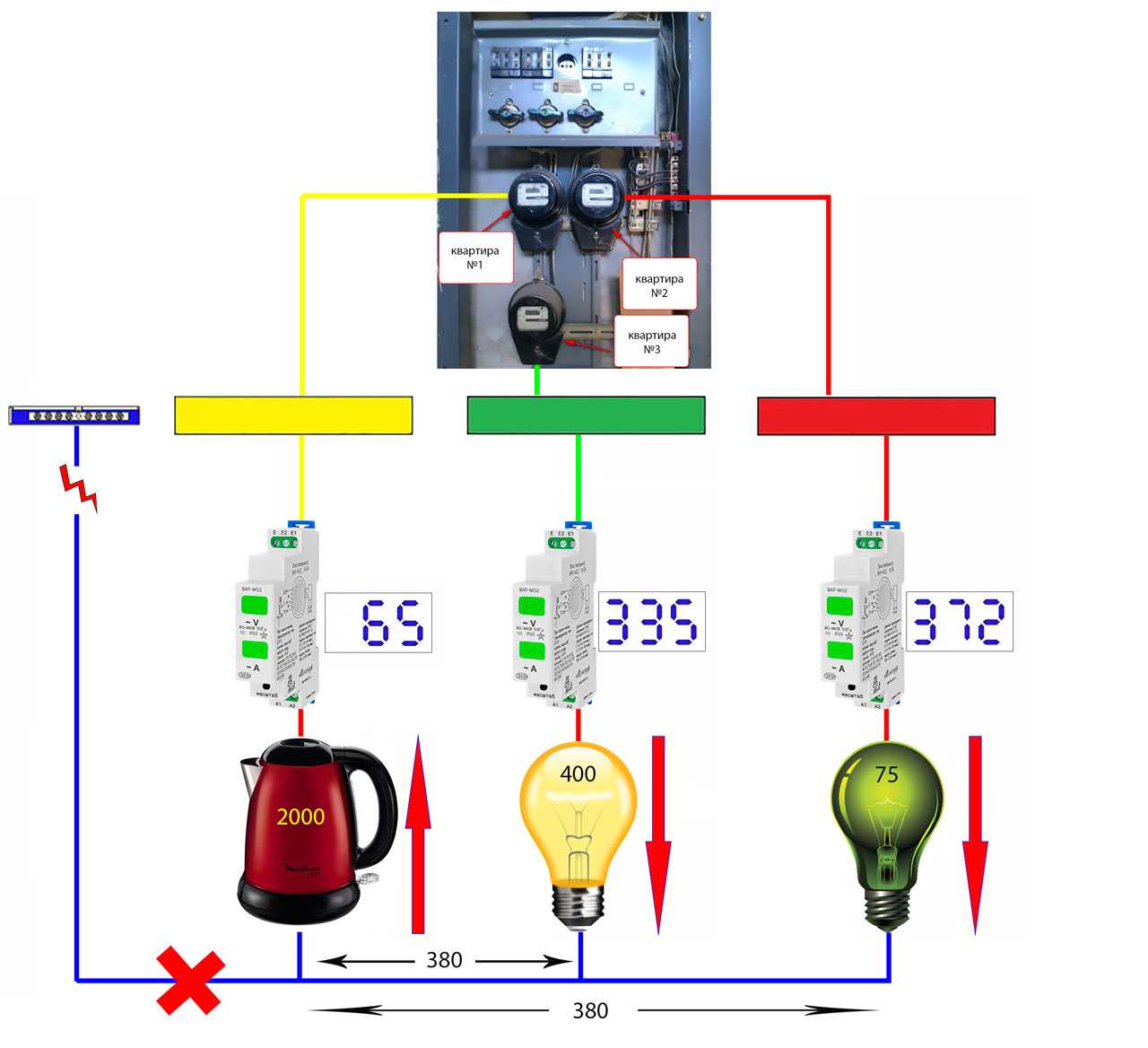 ) часто не могут выдержать возросшее потребление электроэнергии, а многочисленные скрутки с течением времени стали приносит свои потери в качестве. В настоящий момент алюминиевый кабель заменяется на более приспособленный к нагрузкам медный. - — разница потребляемой мощности на фазах.