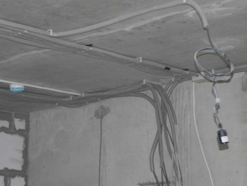 Есть несколько вариантов по их монтажу. Так, электропровода могут монтироваться как в , так и в штукатурке, так и в стяжке на полу, так и под самым потолком (в случае монтажа подвесного потолка).