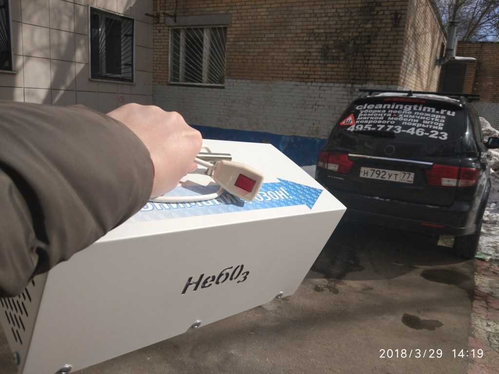 Это Андрей, владелец химчистки в Дедовске. Андрей приобрел озонатор «НебО3» по совету и рекомендации директора химчистки «Деликато». С лета 2017 года озонатор работал внутри цеха химчистки и устранял остатки запахов реагентов и препаратов, используемых в процессе химчистки.