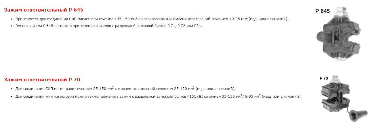 Еще один из вариантов — использование специальных дистанционных зажимов или бандажей. Вот их марки и характеристики с размерами под СИП: