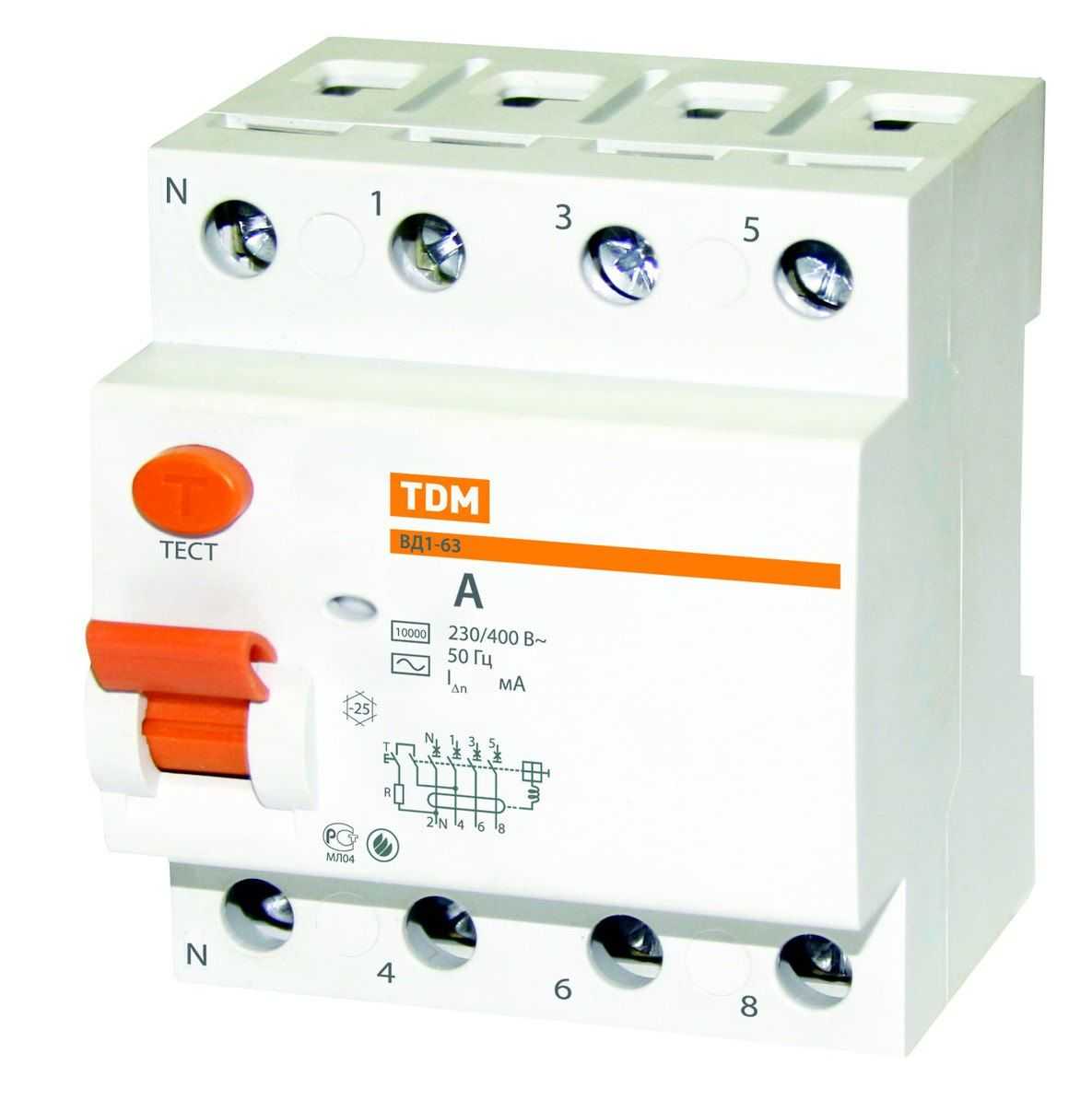 6) Селективное УЗО от 40А, ток утечки 100мА или 300мА