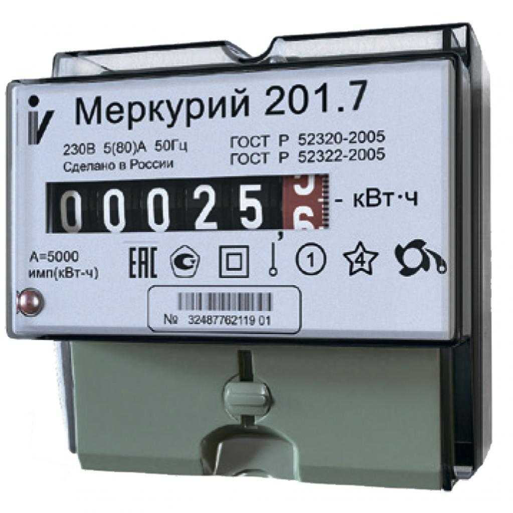 Это однофазная однотарифная модель. У электросчетчика «Меркурий» класс точности 1, следовательно, он подходит для установки в квартиру или в индивидуальный дом. Предназначен для измерения потребляемой мощности в однофазных цепях переменного тока. Характеристики сети: напряжение 220 В, частота 50 Гц, номинальное значение тока 50 А. Безвинтовой компактный корпус оснащен электромеханическим счетным устройством, благодаря чему имеет широкий диапазон температур, в котором может работать (-40о : +55о). Крепится в электрощит на дин-рейку. Розничная цена составляет 859 рублей.
