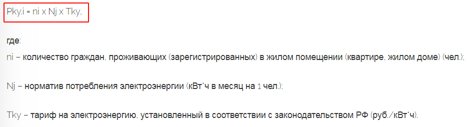 Формула расчёта потребления электроэнергии без установки ПУ: