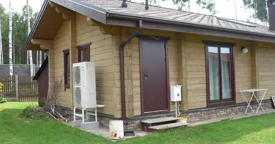 «Воздух-вода» — воздушный тип теплового насоса, обогревающий здание путем забора воздуха снаружи посредством внешнего блока. Работает по принципу кондиционера, только наоборот, преобразуя энергию воздуха в тепло. Такой теплонасос не требует больших затрат на установку, под него не нужно отводить участок земли и, тем более, бурить скважину. Однако, эффективность эксплуатации при низких температурах (-25ºС) снижается и требуется дополнительный источник тепловой энергии.