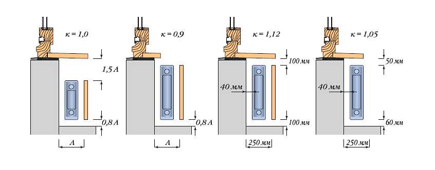 Изменение тепловой мощности радиатора в зависимости от размещения и наличия экрана.