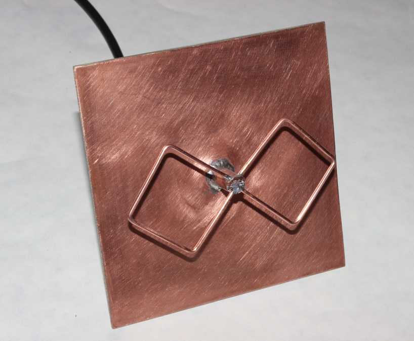 Система состоит из двух квадратных элементов. Для того чтобы сделать расчет антенны для 3g модема на частоту 2100 МГц, размер каждой стороны квадрата должен составлять 53 мм. Вся конструкция выполняется в виде сцепленной структуры, включающей в себя две ромбовидные фигуры с внутренними углами 1200. Это делается с целью снижения внутреннего сопротивления устройства. Соединение ромбов осуществляется между собой методом пайки. Сюда же в дальнейшем припаивается кабель высокой частоты.