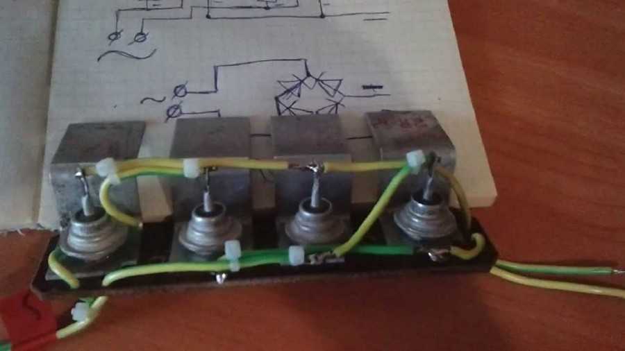 Использовать для выпрямителя нужно диоды с адекватным охлаждением и его параметры должны выдерживать силу тока в 200А. Рекомендуем выбрать тип Д161. Далее выравниваем ток.