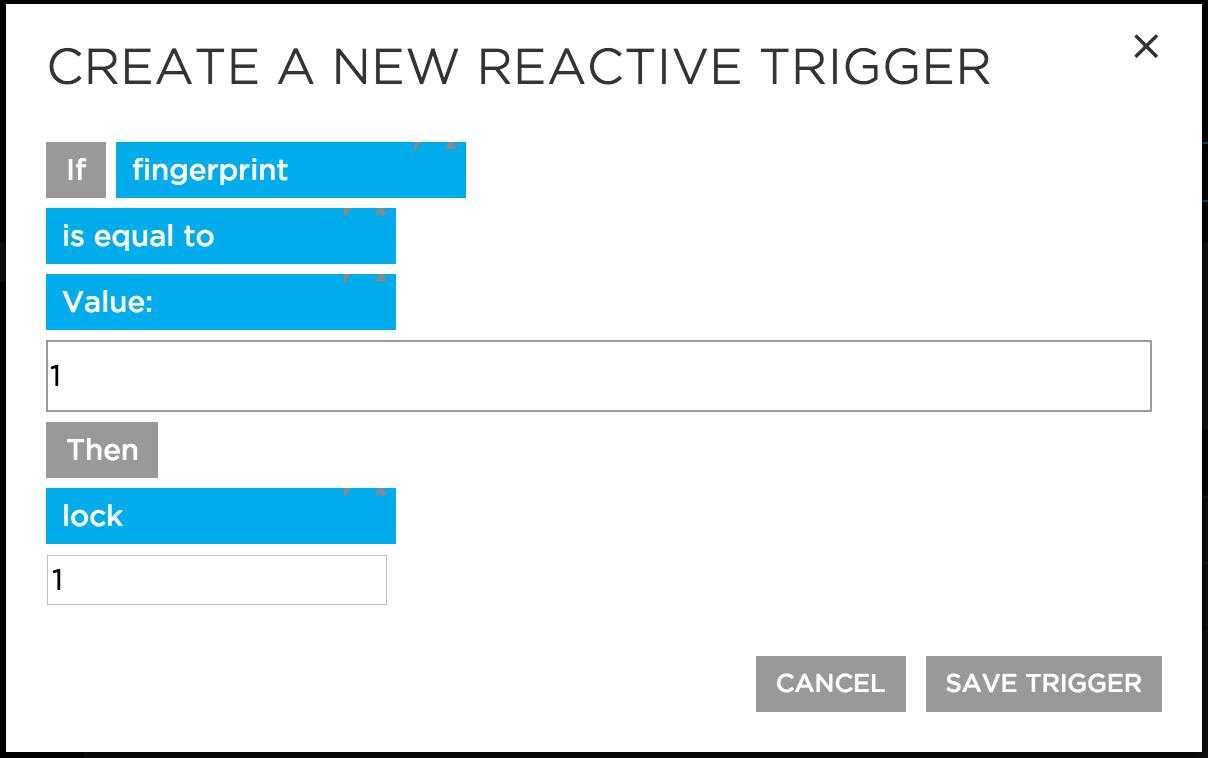 Создаем новый reactive trigger из раздела Triggers в Adafruit IO. Это обеспечит возможность обмениваться данными между каналами датчика отпечатка пальцев и замка:
