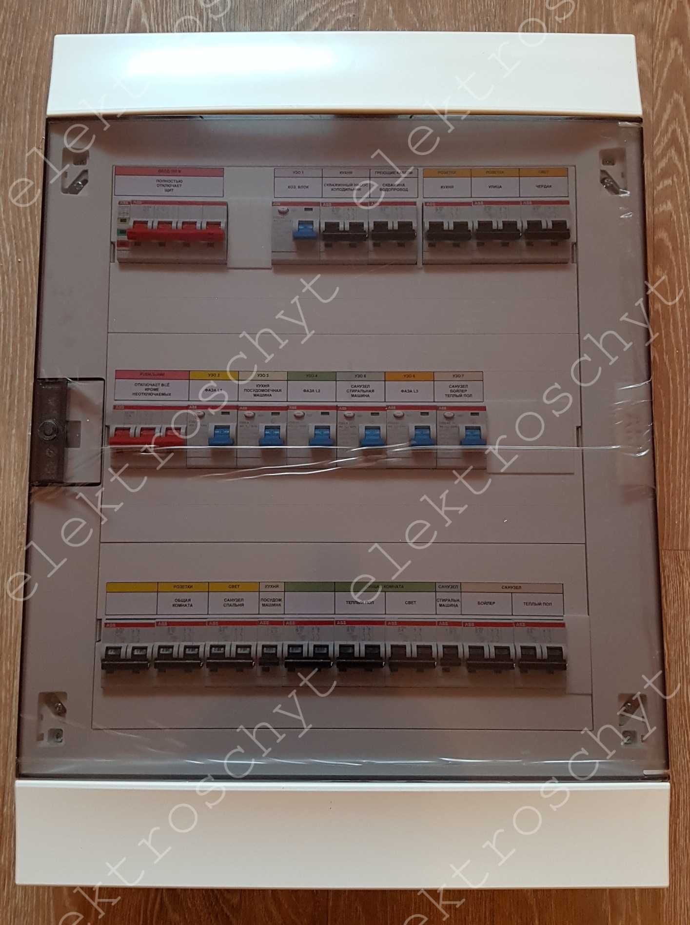 Электрические детали, составляющие внутреннее содержимое электрощита, обычно представлены следующим набором: