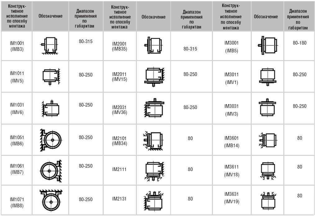 Вторая и третья цифра — пространственный способ монтажа электродвигателя. Если третья цифра «8», например IM1081, то такой электродвигатель может монтироваться в любом положении.
