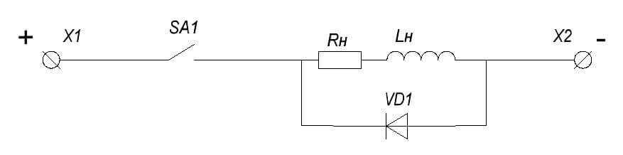 Еще одним методом решения проблемы, связанной с искрением, является установка искрогасительных цепей. Если искрят реле и пускатели в цепи постоянного тока, то параллельно нагрузке устанавливают диод, подключенный катодом к положительному, а анодом к отрицательному полюсу. Таким образом энергия, накопленная в индуктивности и её ЭДС самоиндукции рассеивается на активной части нагрузки, а диод замыкает контур для протекания тока.
