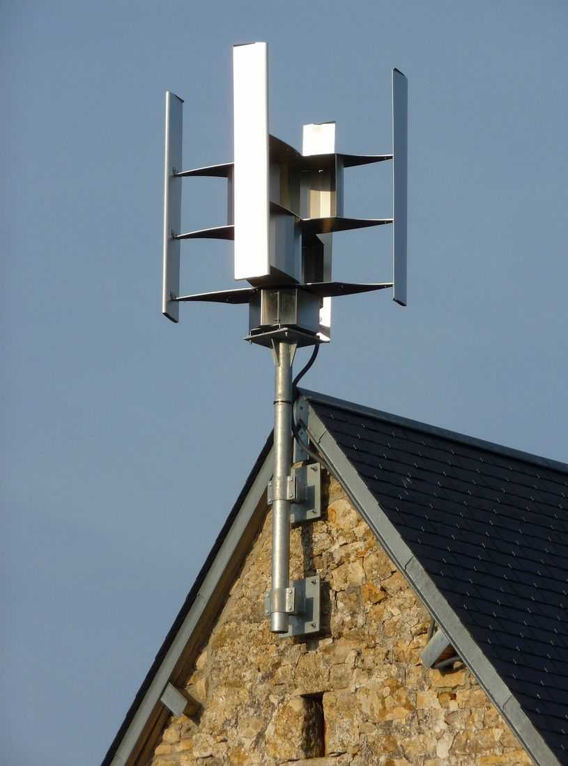 - роторные с вертикальной осью вращения отличаются невысоким уровнем шума, не требуют большой скорости ветра и значительной высоты установки, но КПД у них невысокий;