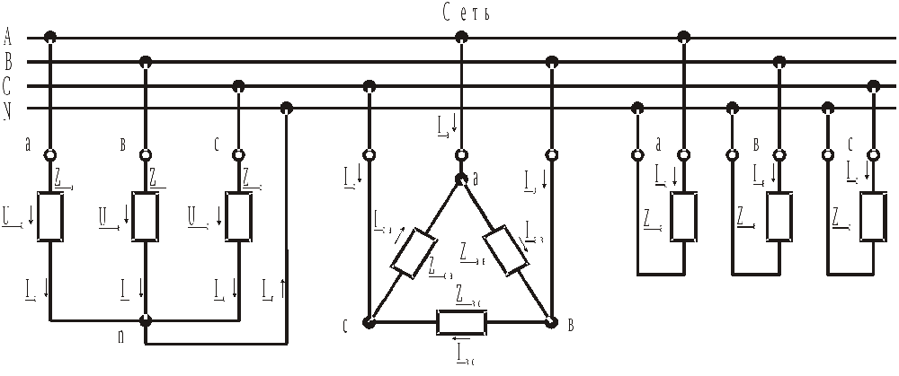 Схемы трехфазных цепей