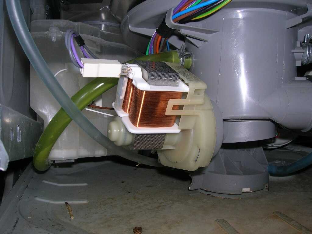 Посудомойка может не сливать воду и из-за поломки насоса. Чтобы проверить работоспособность этой части, снимают нижнюю панель машины и откручивают винты. Прибор переворачивают набок и измеряют напряжение в контактах помпы. Щупы омметра прикладывают к проблемным местам. Если на экране высвечивается число 1000-1500, насос функционирует нормально. Избежать повторного возникновения неисправности помогает очищение посуды от остатков пищи и использование качественных моющих средств.
