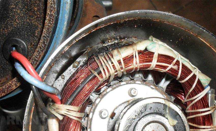 Подгорание обмотки статора из-за попадания воды в двигатель
