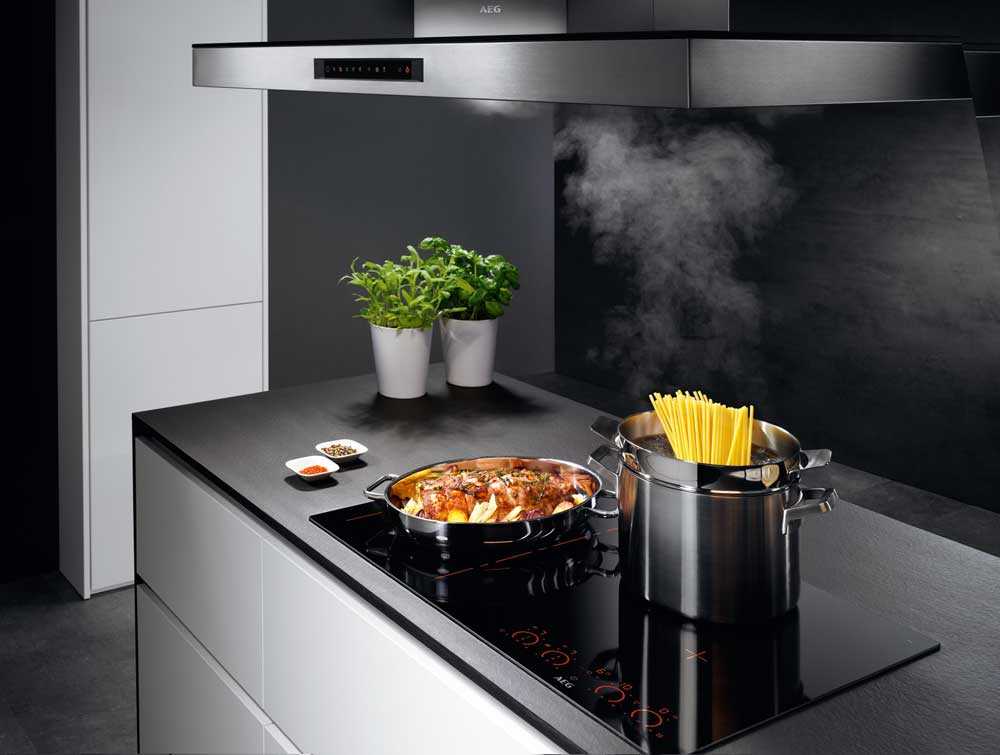 Самый популярный вариант — интеграция в один технический комплекс вместе с кухонной вытяжкой. При включении варочной поверхности автоматика одновременно включает и вытяжку, а при отключении нагрева — выключает вытяжку спустя некоторый промежуток времени (5–10 мин). Подобные комплексы есть в ассортименте Elica.