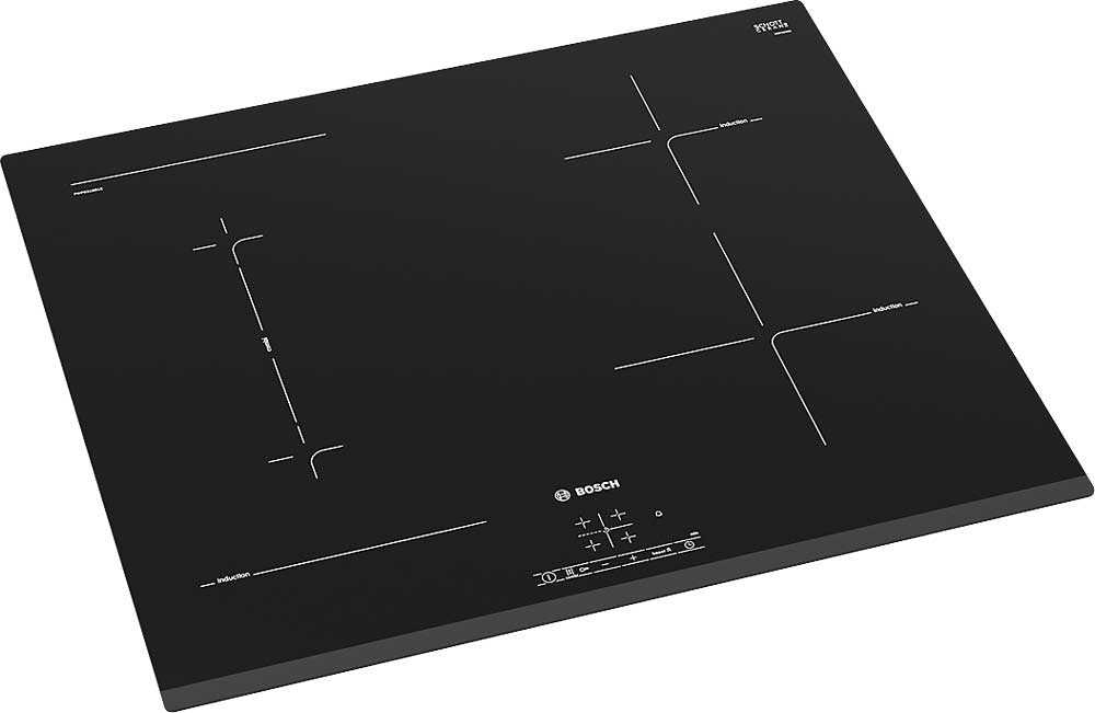 Индукционная варочная поверхность PWP631BB1E (Bosch), функция CombiZone, управление TouchSelect, скошенный передний край (29 990 руб.). Фото: Bosch