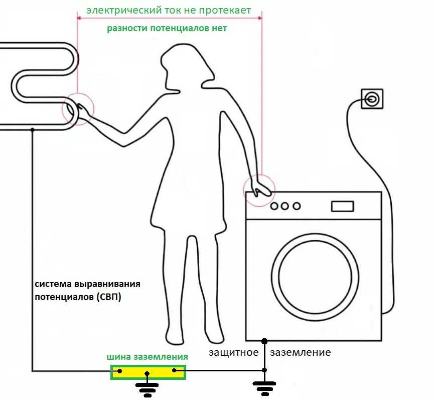 Благодаря этим системам, во всех точках, которых может одновременно коснуться человек, происходит выравнивание электрического потенциала до одинакового значения. Ситуация, когда при одновременном касании в одной точке будет напряжение 220 вольт, а в другой 10 вольт, исключается.