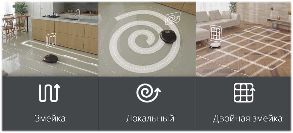 Робот-пылесос iClebo Omega производит уборку в трех режимах: МАХ, локальный и автоматический:
