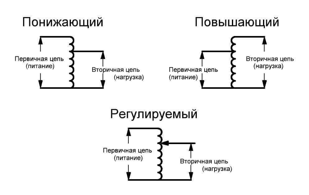 Они бывают повышающими, понижающими и разделительными (напряжение на входе равно напряжению на выходе). При этом если подать питание на вторичную обмотку понижающего трансформатора – на первичные обмотки вы получите повышенное напряжение, то же самое и правило работает и для повышающего.