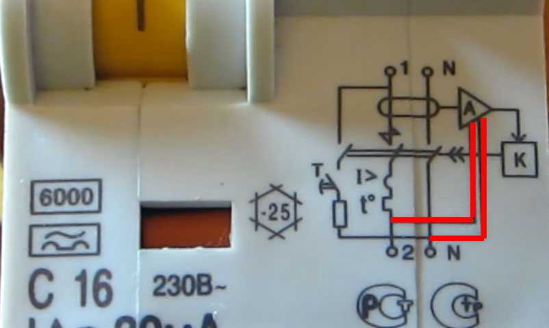 На корпусе всех современных УЗО изображается его электрическая схема. Если ее нет на лицевой части корпуса ищите сверху.