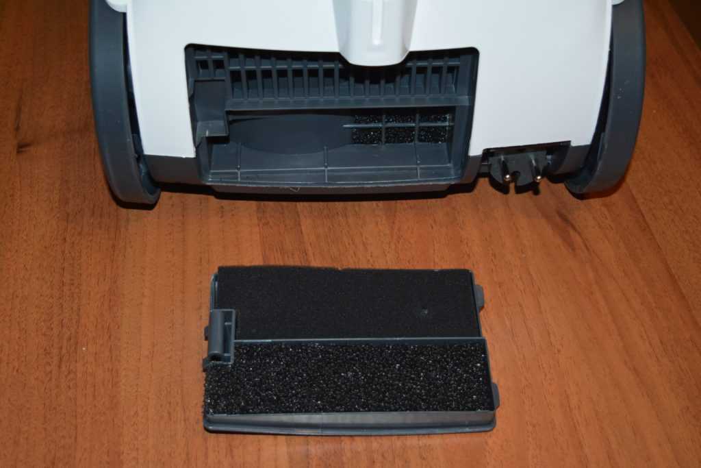 - Выходной фильтр легко вынимается при нажатии на кнопки по бокам.