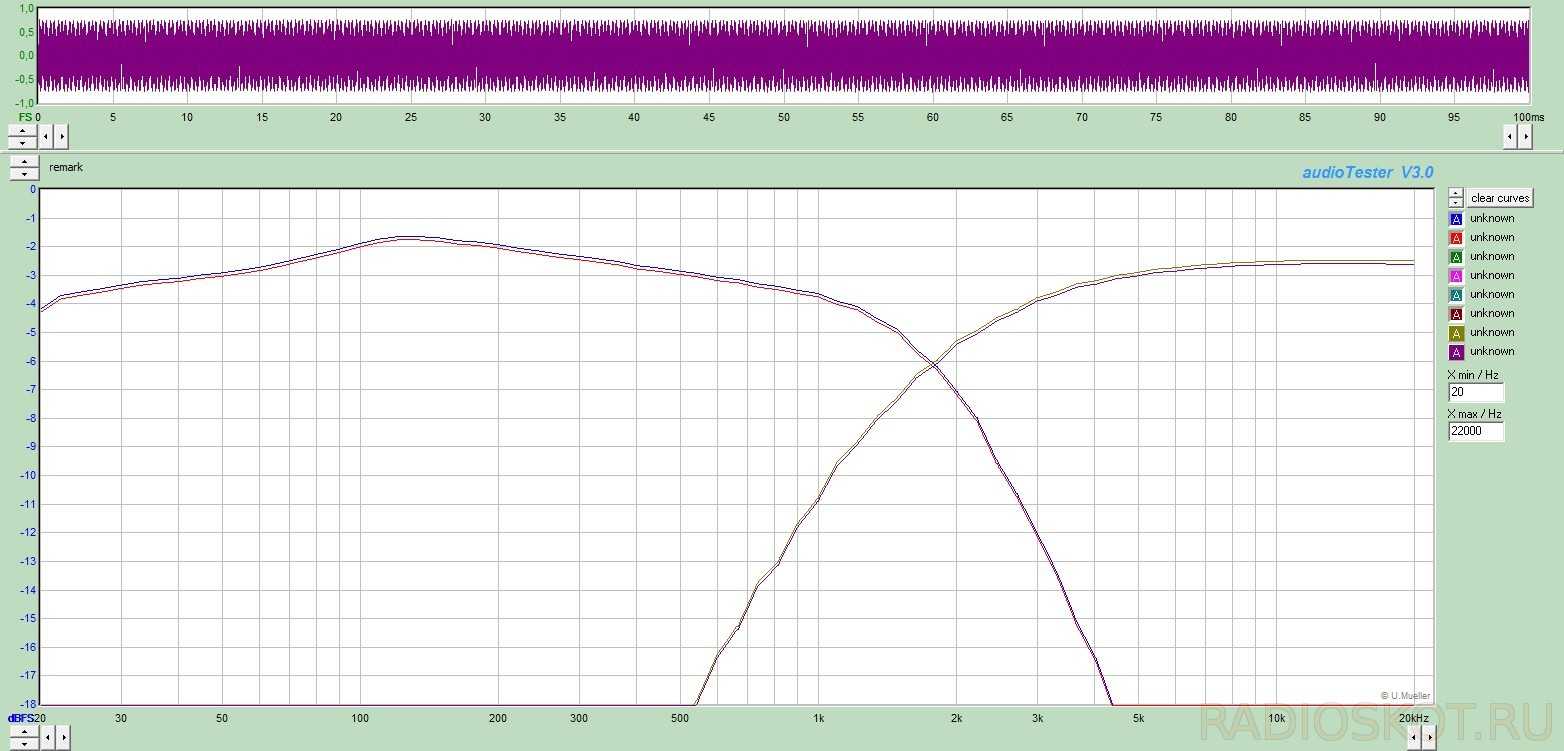 На приведенных выше картинках АЧХ как самого фильтра, так и АЧХ динамиков с его включением.