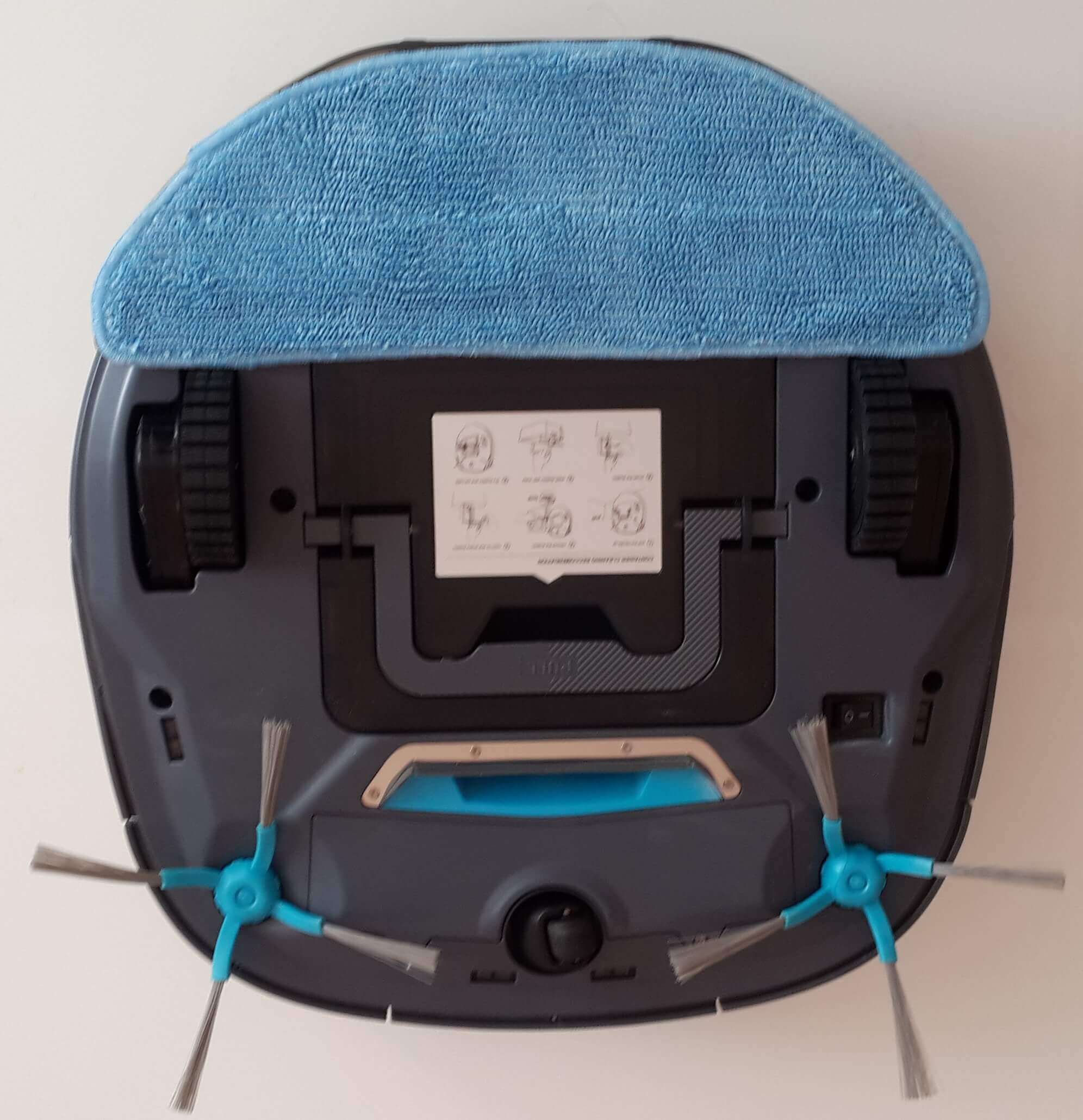 Вместе с тем, робот-пылесос способен осуществлять влажную протирку пола. Для этого необходимо прикрепить к нижней части аппарата отдельный блок с салфеткой из микрофибры, предварительно заполнив его водой. Ёмкости резервуара достаточно для одного цикла работы.