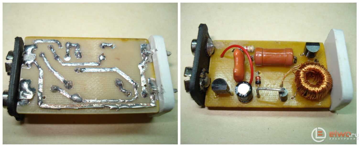 — сразу за галетным выключателем припаян проводник с которого поступит напряжение на преобразователь;