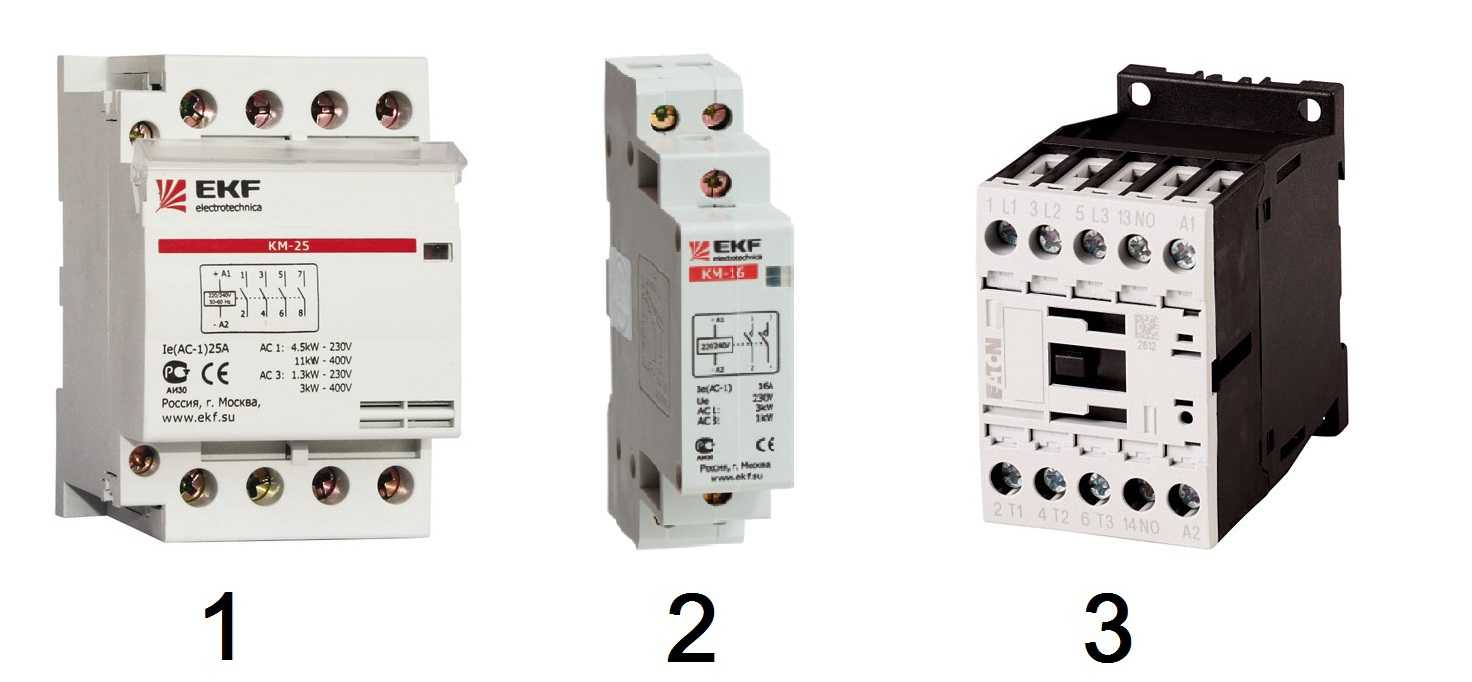 Устройства на этих рисунках правильнее называть магнитными пускателями. Устройство под цифрой один предполагает возможность установку дополнительных модулей, например теплового реле (рисунок 2). На третьем рисунке блок «пуск-стоп» для управления двигателем с защитой от перегрева и схемой автоподхвата. Это блочное устройство — тоже называют магнитным пускателем.