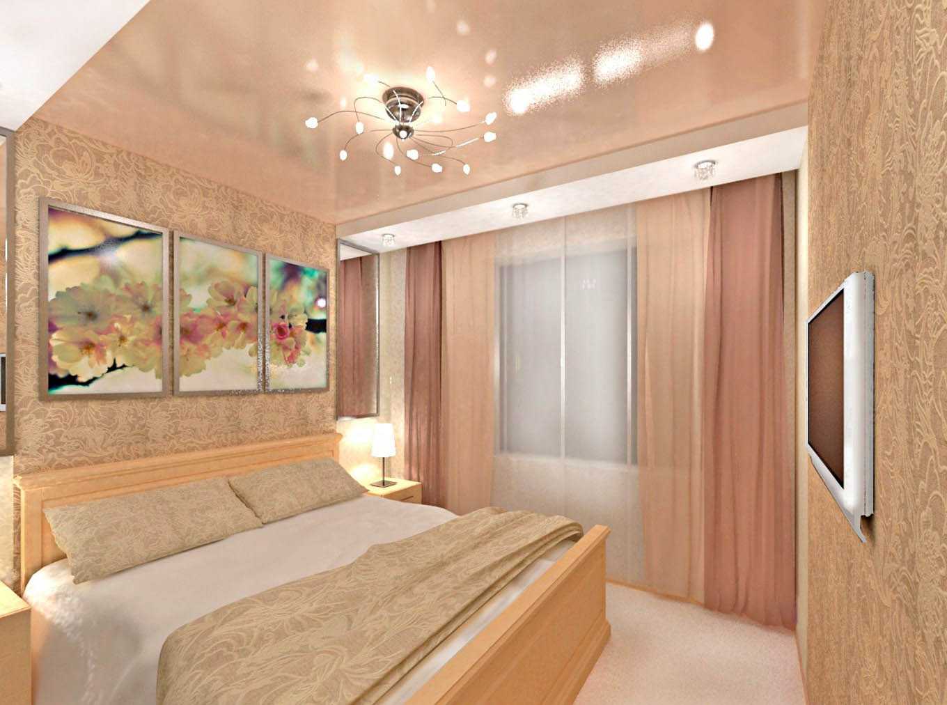 Не стремитесь побить все рекорды по мощности освещения. Спальня — это комната для сна, одно из самых умиротворенных мест в вашей квартире или дома, поэтому первоочередная задача — создать спокойную, располагающую ко сну атмосферу. Если используете вариант с центральной люстрой на натяжном потолке, то можете подчеркнуть при помощи софитов зону возле зеркала или же прикроватную тумбочку. Это практично!