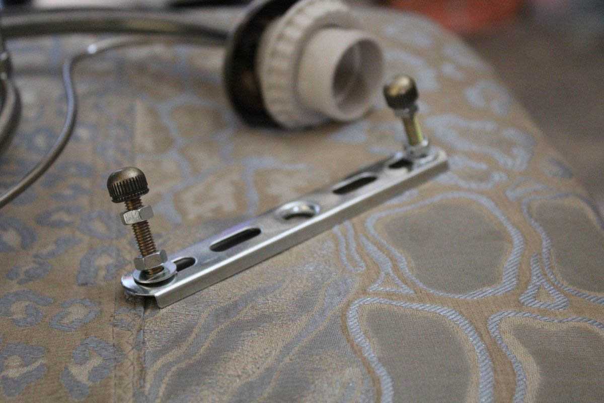 Шаг 5. На монтажной планке устанавливают и протягивают на контргайку монтажные шпильки. Их нужно хорошенько затянуть, иначе потом будет невозможно закрепить светильник. Крепят планку саморезами к платформе.