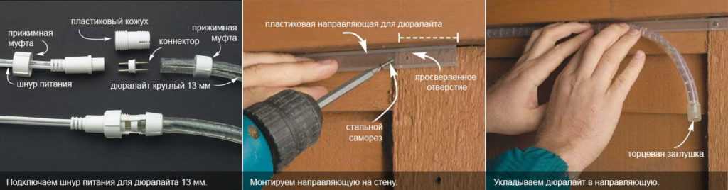 Принимаясь за установку дюралайта, необходимо запомнить основные правила и особенности его крепления: