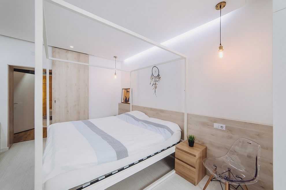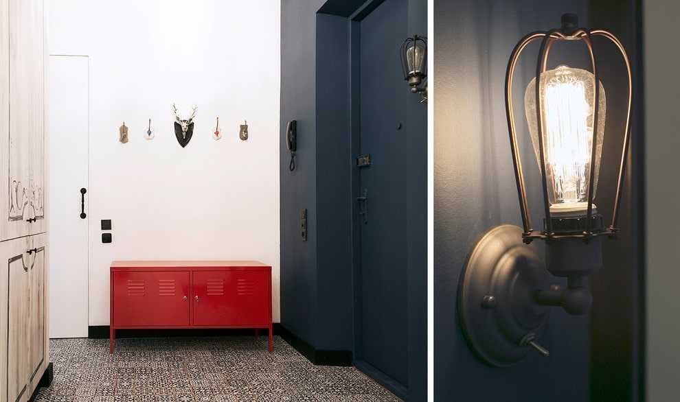 Две ничем не укрытые неяркие лампочки вжились в интерьер, делая образ лофта полноценным
