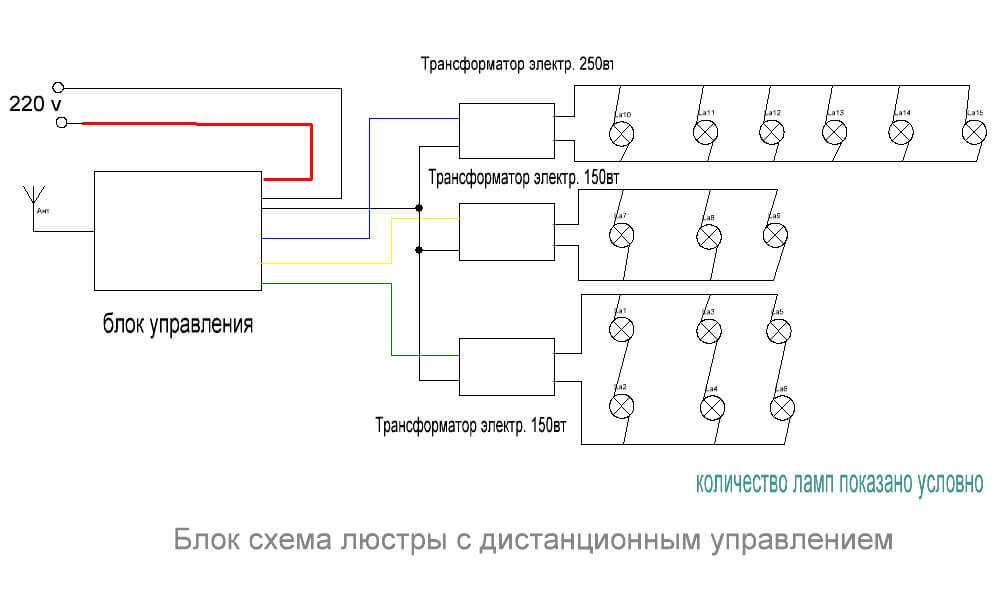 Эта техника имеет довольно много преимуществ перед обычными, ничем не примечательными люстрами, но главные их достоинства — эффектность освещения и удобство. Осветительные приборы, управляемые пультом, являются довольно сложными конструктивно, поэтому навыки в электротехнике и электронике у мастера приветствуются. Если светильники с обычными лампами накаливания имеют простой механический выключатель, то здесь принцип совершенно другой. Сигнал от пульта управления улавливает детектор специального радиореле. «Умные» люстры имеют в составе следующие элементы: