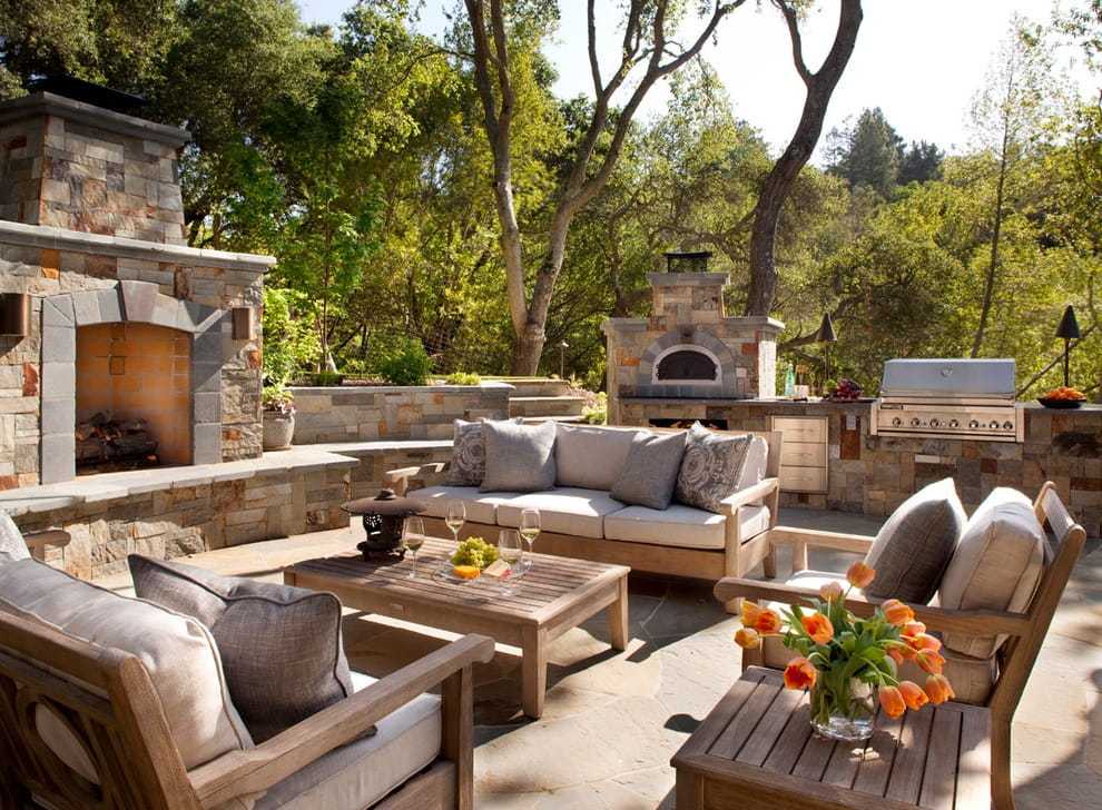 Площадка, где обустраивают печь, уличный камин, мангал, становится любимым местом для всей семьи. Здесь можно посидеть с друзьями, отдохнуть в домашнем кругу, приготовив шашлык и другую вкусную еду на открытом огне.