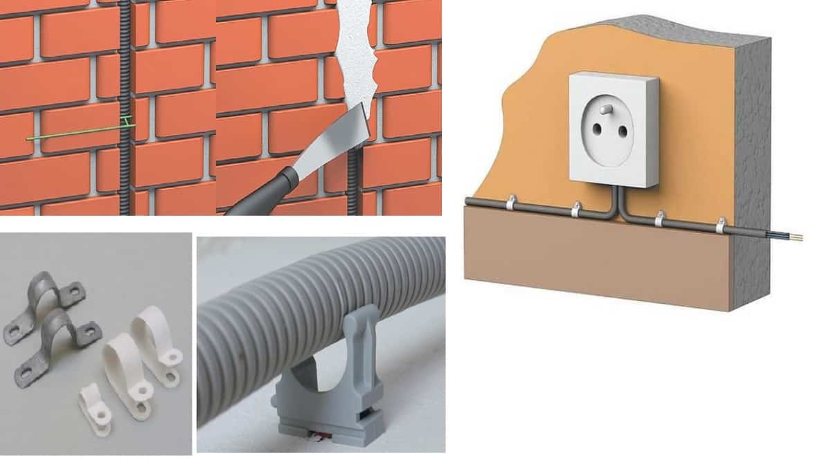 Закрепите проводку на стенах при помощи хомутов или любым удобным для вас способом. Если для освещения вы штробили стены, то уложите кабель в штробу.