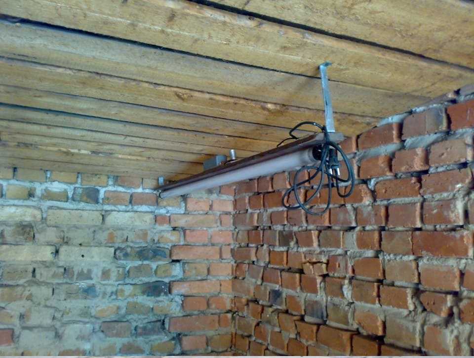 Монтаж освещения может отличаться в каждом конкретном случае, что связано с индивидуальными особенностями конструкции каждого сарая. В качестве примера рассмотрим вариант запитки воздушной линией, для этого вам понадобится выполнить такие действия: