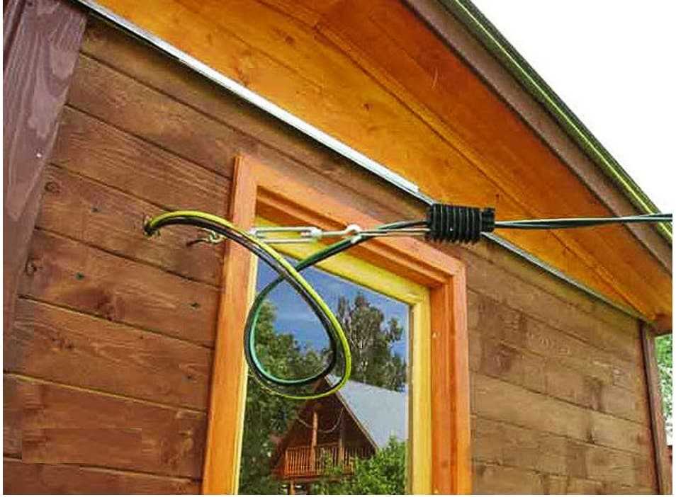 Натяните стальной трос, проследите, чтобы натяжка была сильнее, чем у кабеля, иначе их назначение поменяется местами. Если вы используете СИП с несущей жилой, трос натягивать не нужно.