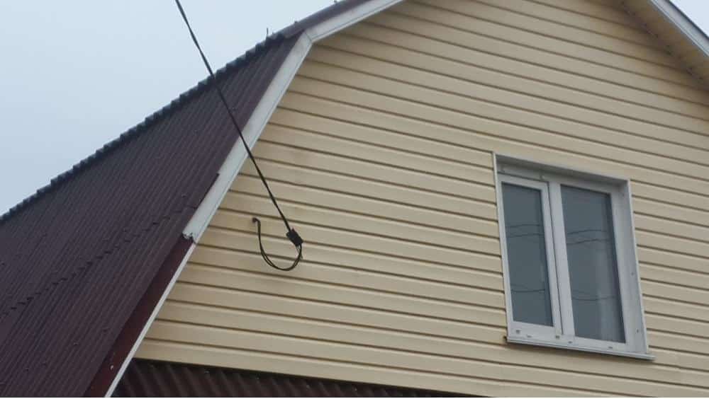 Просверлите отверстие в стене и заведите кабель в сарай. Место ввода лучше выбирать в непосредственной близи от точки крепления.
