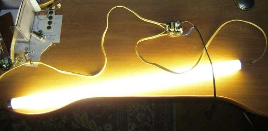 Обмотки трансформатора в данном случае включаются противофазно, а генератор нагружается высокочастотным напряжением. При подаче резонансного напряжения внутри колбы происходит пробой газовой среды, который порождает необходимое свечение.