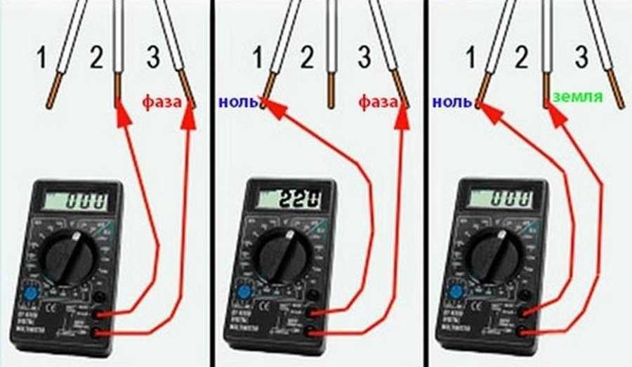 Проверяя измерительный прибор, следует отыскать нулевой элемент. В отличие от других проводников, на этом не будет напряжения. Затем нужно поставить к нулю щуп и поочередным образом выключить клавиши для определения принадлежности источников.