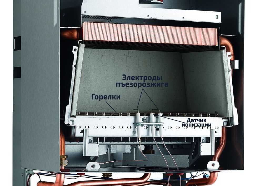 Расположение горелок, электродов розжига и датчика ионизации, которые нужно своевременно чистить.