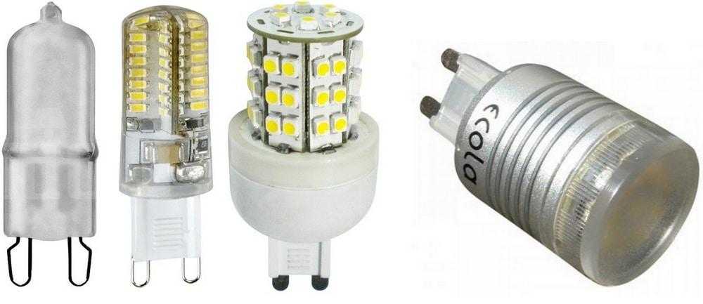 Соединение G4 используется в маленьких галогенных лампочках. Чаще используются для декорации, в точечных, а также во встроенных светильниках. Бывает тип G9. Используется в сети переменного тока с напряжением 220 В, подходит для декоративных светильников.