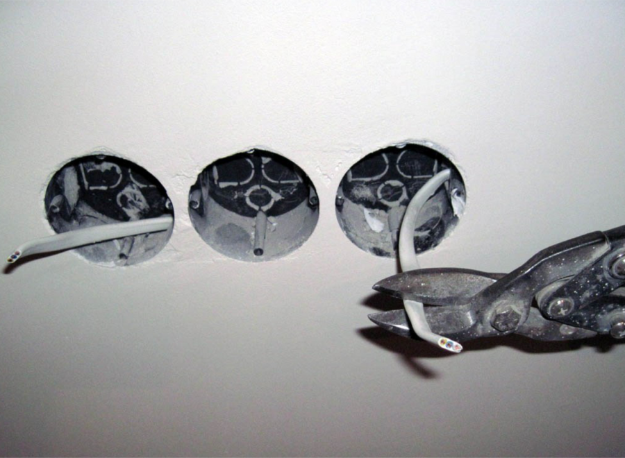 Будущее место для нового устройства необходимо тщательно очистить, а торчащие провода зачистить на один или два сантиметра.