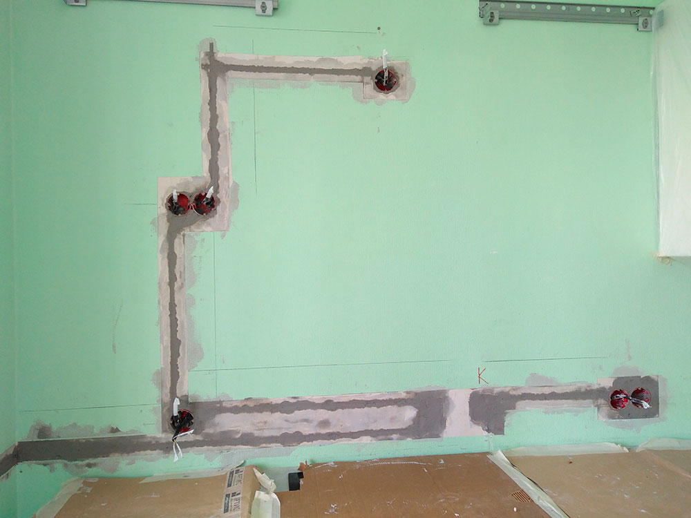 - Карандашом обозначить линиями путь, где будет проходить канавка для электропроводки.