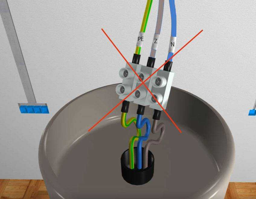 Третьей распространенной ошибкой является подключение нулевого провода на люстре не к общему нулю в распредкоробке, а к одному из проводов фазы.
